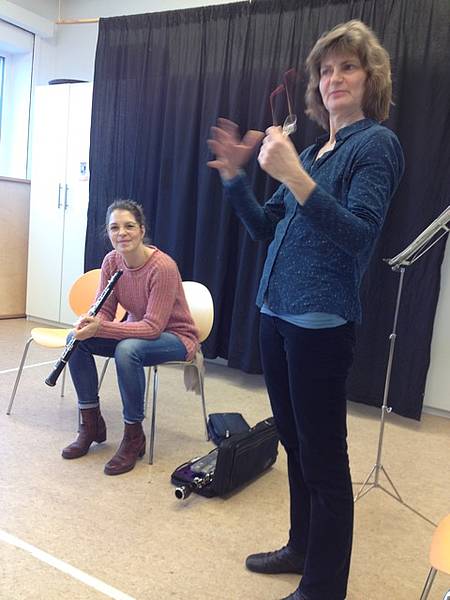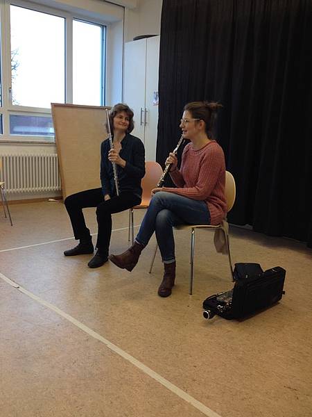 Am Montag, den 11. Januar 2016 hatten wir in unserer Schule erneut Besuch von zwei Musikern der NDR Radiophilharmonie. Nachdem uns im letzten Frühjahr zwei Blechbläser ihre Instrumente vorgestellt haben, kamen in diesem Jahr mit der Oboe und der Querflöte die Holzbläser an die Reihe. Heike Malz und Kerstin Ingwersen spielten verschiedene Stücke auf ihren Instrumenten und auch auf deren „Verwandten“, der Piccoloflöte und dem Englischhorn.
