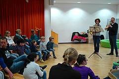 Am 27.04.2015 hatten wir Besuch von zwei Musikern der NDR Radiophilharmonie. Herr Schultz und Frau Thies haben uns ihre Instrumente vorgestellt: die Trompete und das Horn. Am schönsten war, dass unsere Schülerinnen und Schüler beide Instrumente auch ausprobieren durften. Einen ausführlichen Bericht mit vielen Bildern finden Sie