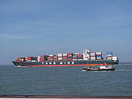 Rechtzeitig zum Mittagessen sind schließlich alle im Haus Hinterm Deich angekommen. Das Haus liegt sehr schön hinter dem Deich in der Grimmershörner Bucht. Von unseren Zimmern im ersten Stock konnten wir über den Deich auf die Elbmündung sehen. Jeden Tag fahren dort riesige Containerschiffe in Richtung Hamburger Hafen und zurück.