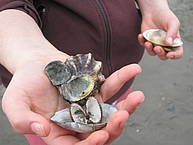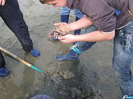 Auf der Insel hatten wir im Nationalparkzentrum eine Führung. Am besten hat uns ein großes Aquarium gefallen, bei dem Ebbe und Flut nachgespielt wurden. In diesem Aquarium lebten auch einige Strandkrabben, bei deren Fütterung wir zuschauen durften. Ein Wattwurm, der sich fast ganz eingegraben hatte, wurde von der Strandkrabbe noch im letzten Augenblick aus seiner Röhre gezogen und verspeist. Auch Muscheln leben gefährlich. Eine Strandkrabbe kann eine Muschelschale mit ihren Zangen aufbrechen und sich dann das weiche Innere herausholen.