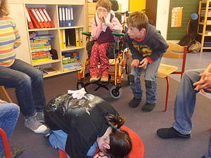 Sich auszudenken, mit welchem Instrument Ereignisse aus Geschichten vertont werden können, war nicht einfach, hat uns aber viel Spaß bereitet. Und manchmal, bei schönem Wetter, haben wir das Spielen nach draußen verlegt und die Sonne genossen.