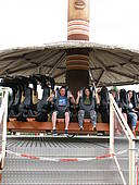 Im Serengetipark gibt es auch noch eine Menge Karussels und Fahrgeschäfte. Manche sind ganz gemütlich, wie das alte Karussel, auf dem Jennyca sitzt. Feride und Patrick haben sich dann noch in den „Kumba Twister“ getraut. An der großen Stange werden die Sitze gedreht und gleichzeitig wie bei einer Schiffsschaukel von der einen zur anderen Seite geschwungen. Da kann einem ganz schön schwindelig werden!