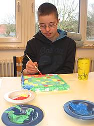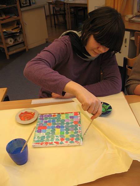 Im Verlauf des zweiten Schulhalbjahres begann die Klasse Ruddat ein neues Kunstprojekt. Wir wollten mit bisher unbekannten Materialien arbeiten und so entschlossen wir uns Faden-Mosaikbilder auf Keilrahmen mit Acryl farblich zu gestalten.