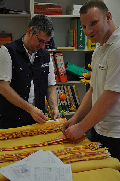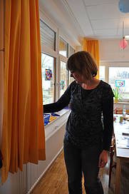 Heute hat die Firma Seidel aus Garbsen in unseren Klassenräumen und im Büro neue Gardinen aufgehängt. Es hat ganz schön lange gedauert, bis die vielen, vielen Häkchen eingehängt waren und alle Gardinen an den Fenstern hingen.